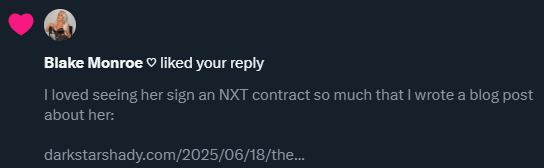 I love tweeting during WWE shows and PLEs. I love when someone replies to me or likes my posts. Seeing Karrion Kross follow me and Blake Monroe liking one of my posts? Easily two highlights of my year. But I know I don’t usually get noticed much. My replies get buried. Other people post the high-quality videos that I share.