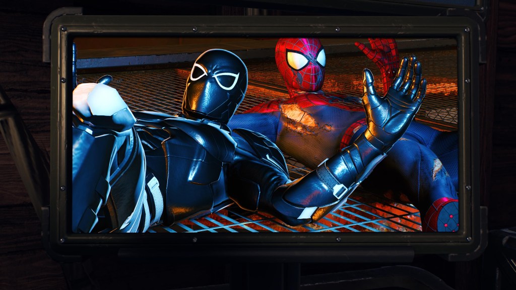 I just finished playing the part of the game where Peter goes to search the foundry for Tombstone. Harry Osborne joins him, complete in a new symbiote-enhanced suit.